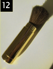 使う前にブラシを振ります。ブラシの毛の部分を下に向けて、かなり強めに振ってください。 腕全体を使って・・・強めに!振ってください。