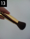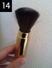 ティッシュの上でパウダーをブラシ全体になじませます。