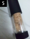 そして、粉々にしたパウダーをブラシの柄の部分に入れます。